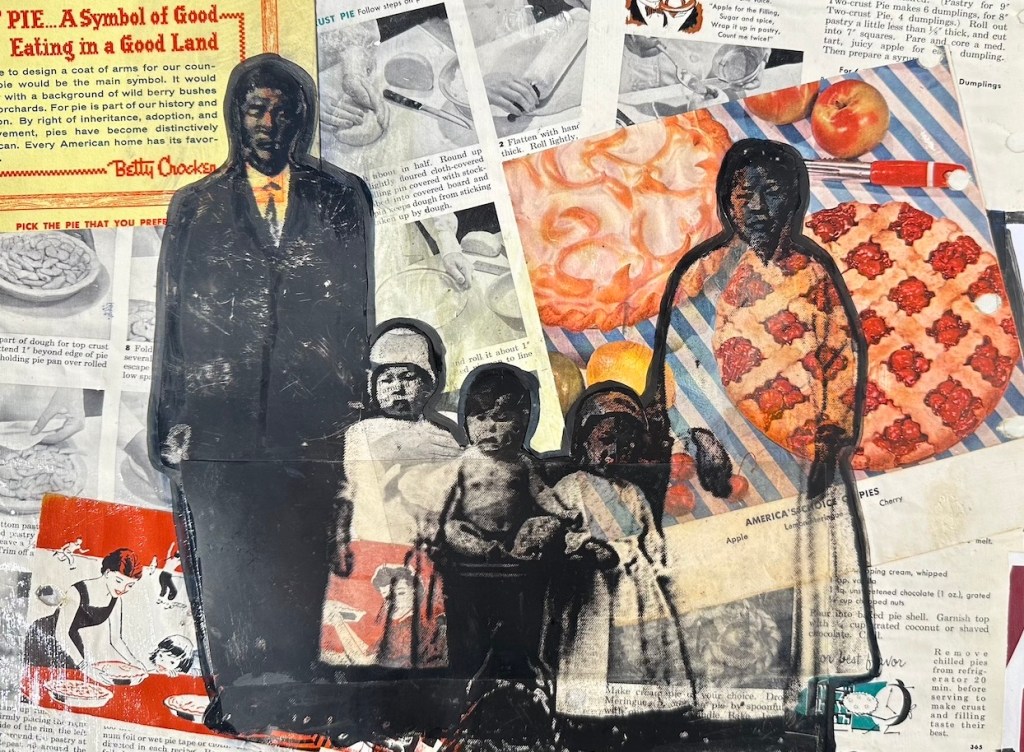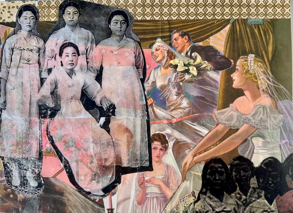 Pretty as a Picture…Bride, Mixed Media on Canvas, 12 in. x 16in., 2018-2025 As American as Apple Pie, Mixed Media Collage on Canvas, 12 in. x 16in., 2018-2025